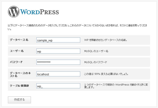 必要情報を入力し「作成する」をクリックして先に進んでください。