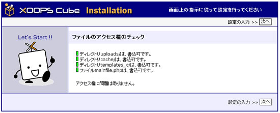 「アクセス権に問題はありません。」と表示されたら「次へ」をクリックして先に進んでください。